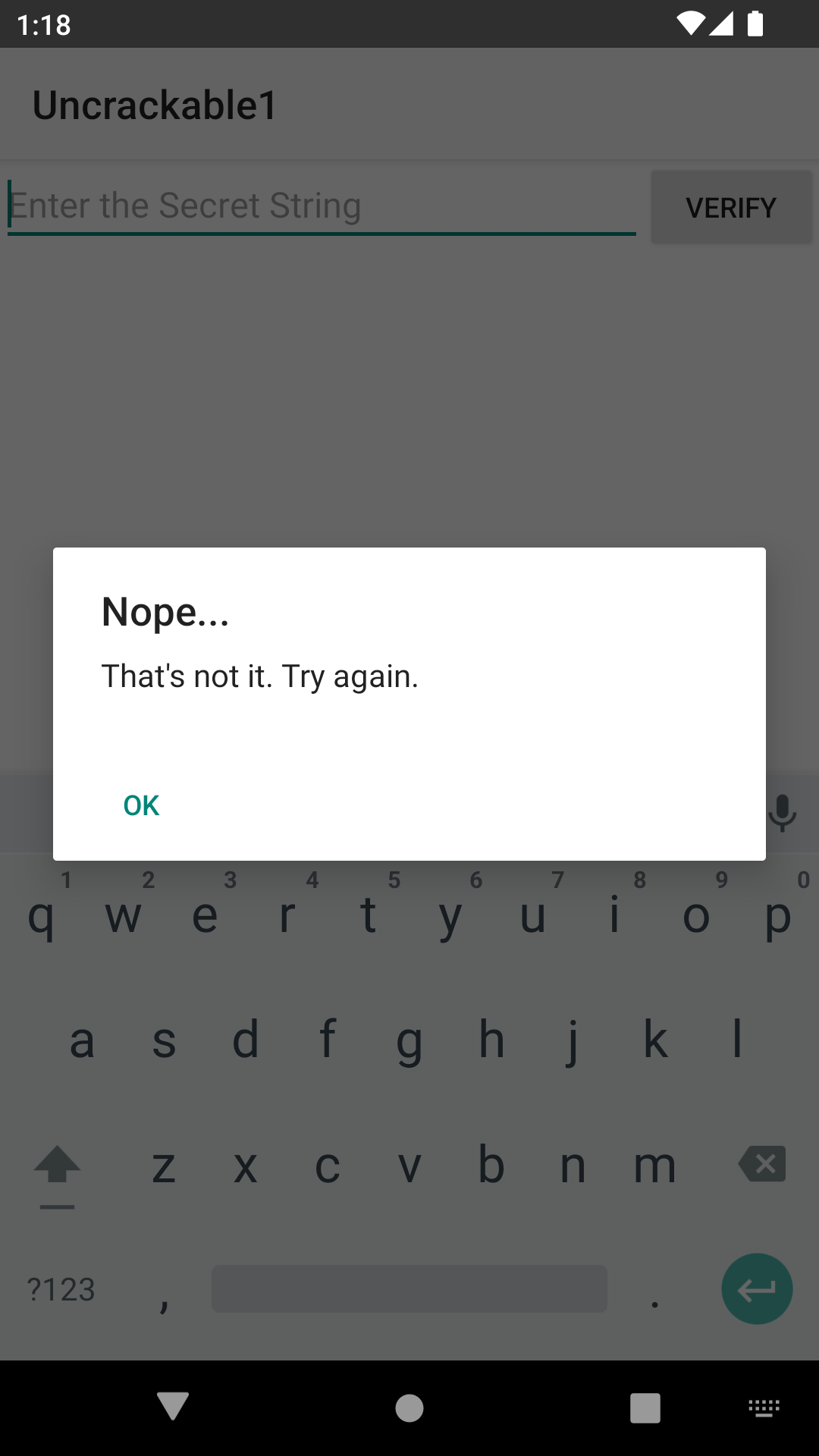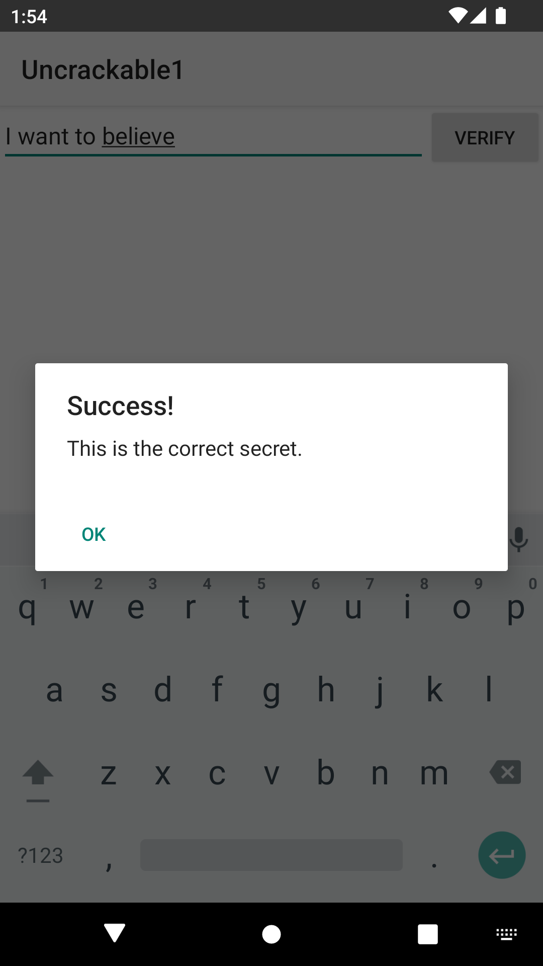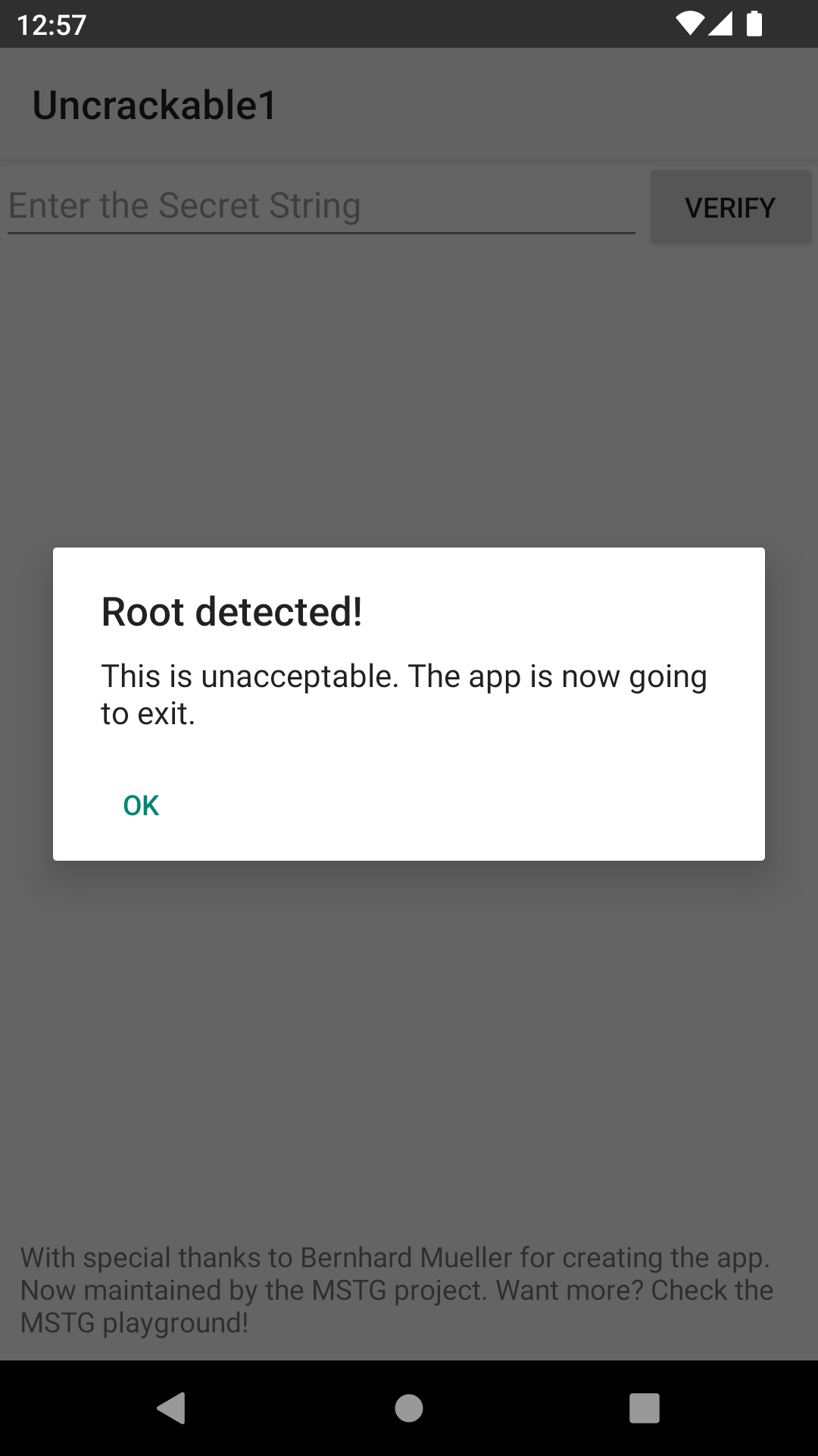 [Android Emulator 5554::owasp.mstg.uncrackable1 ]-> a.a result: I want to believe